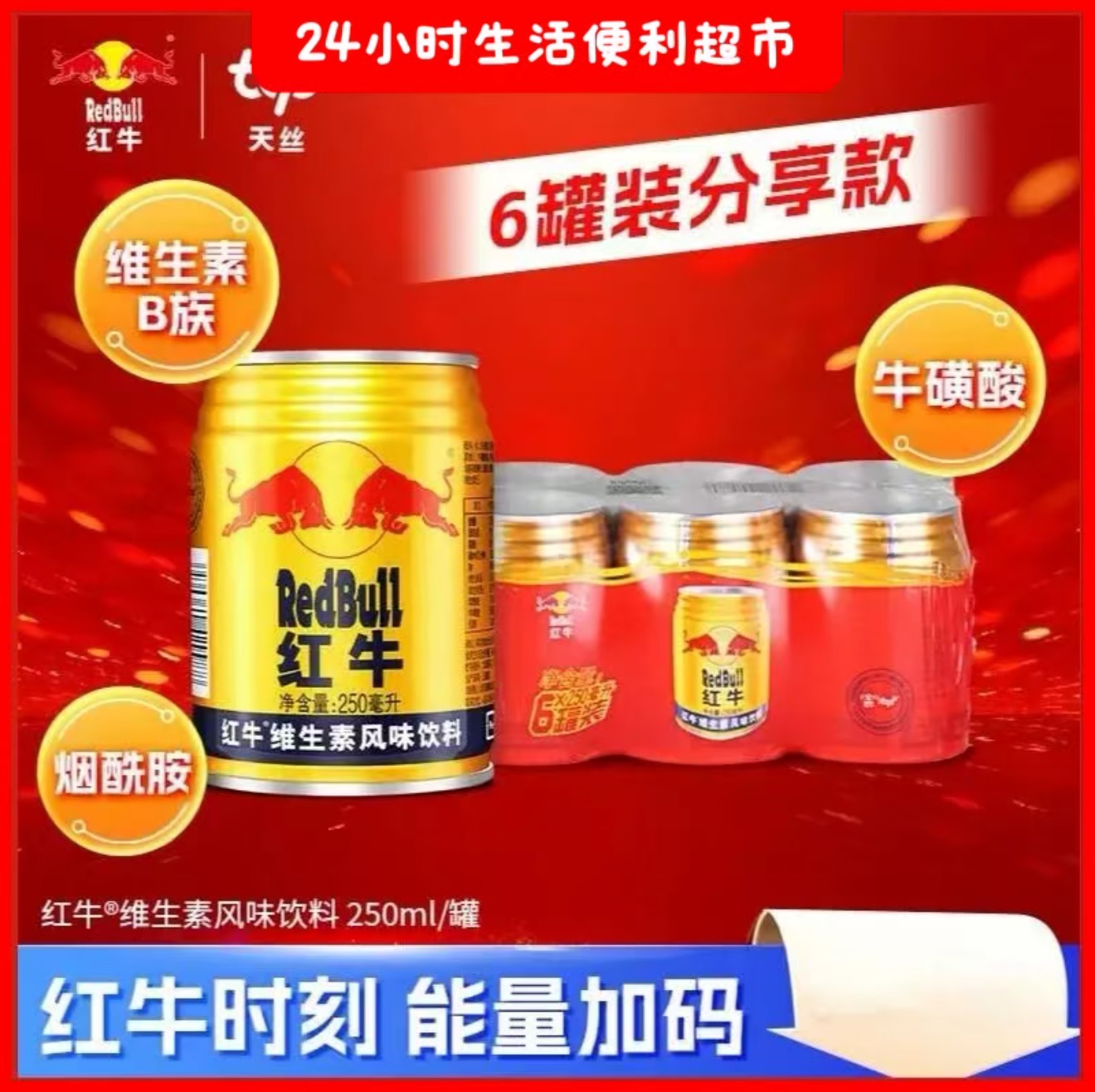 【6瓶装】红牛 维生素风味饮料 250ml*6听
