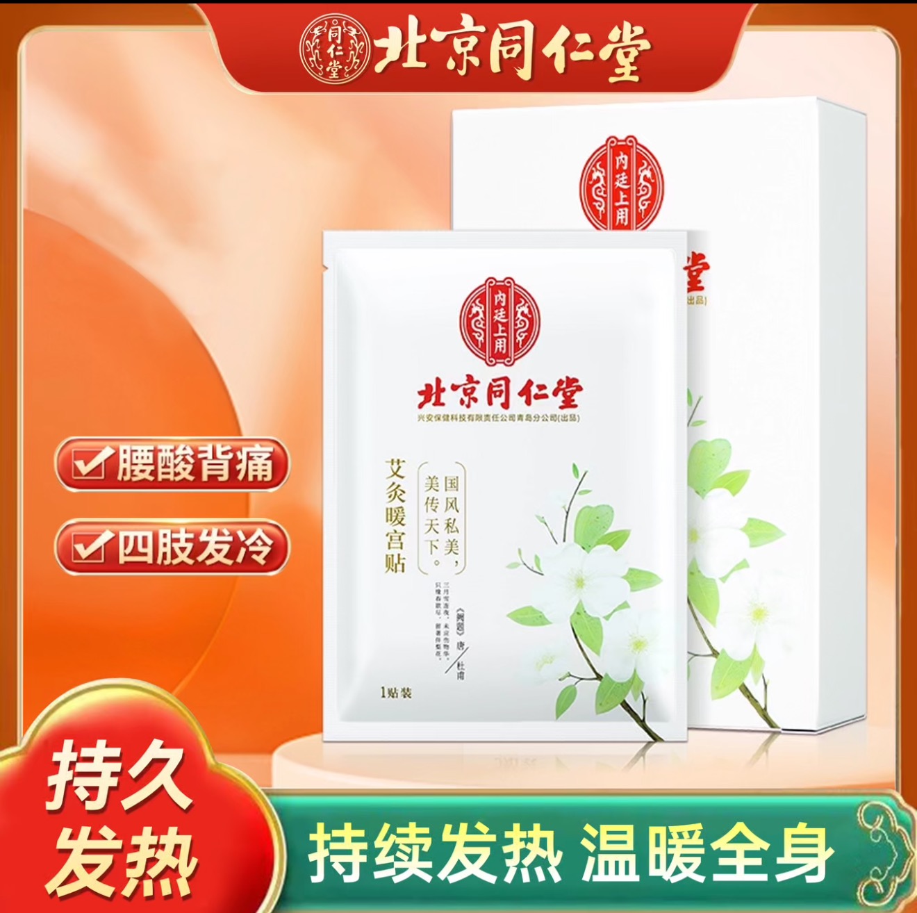 北京同仁堂暖贴调理大姨妈贴艾草艾灸贴暖宝宝5片/盒