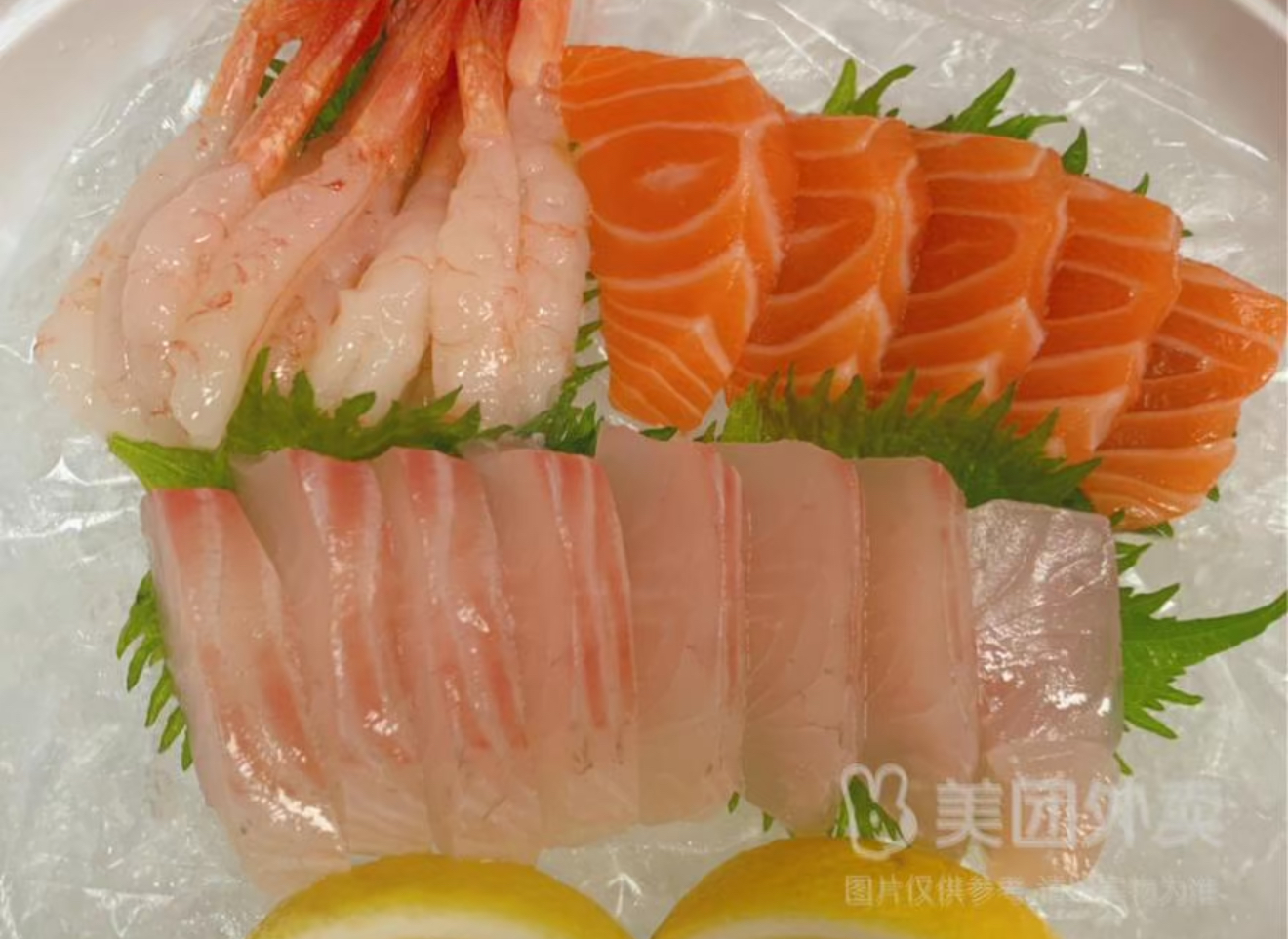 三文鱼50g+甜虾15只+鲷鱼7片