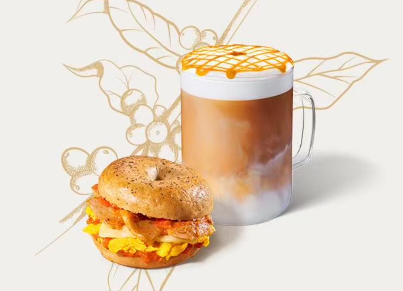 冰焦糖玛奇朵(大杯)+炙烤松板肉贝果三明治套餐